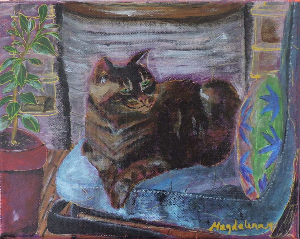 Welcome to my first solo exhibition, running from May 6 to June 2, 2025, at Dupont & Dupont. This collection features ten art pieces that explore the interplay of the ordinary and divine in cats. The journey begins with an invitation to imagine the extraordinary realms these magical beings might inhabit and ends with their everyday lives as house companions, where we worship them most.